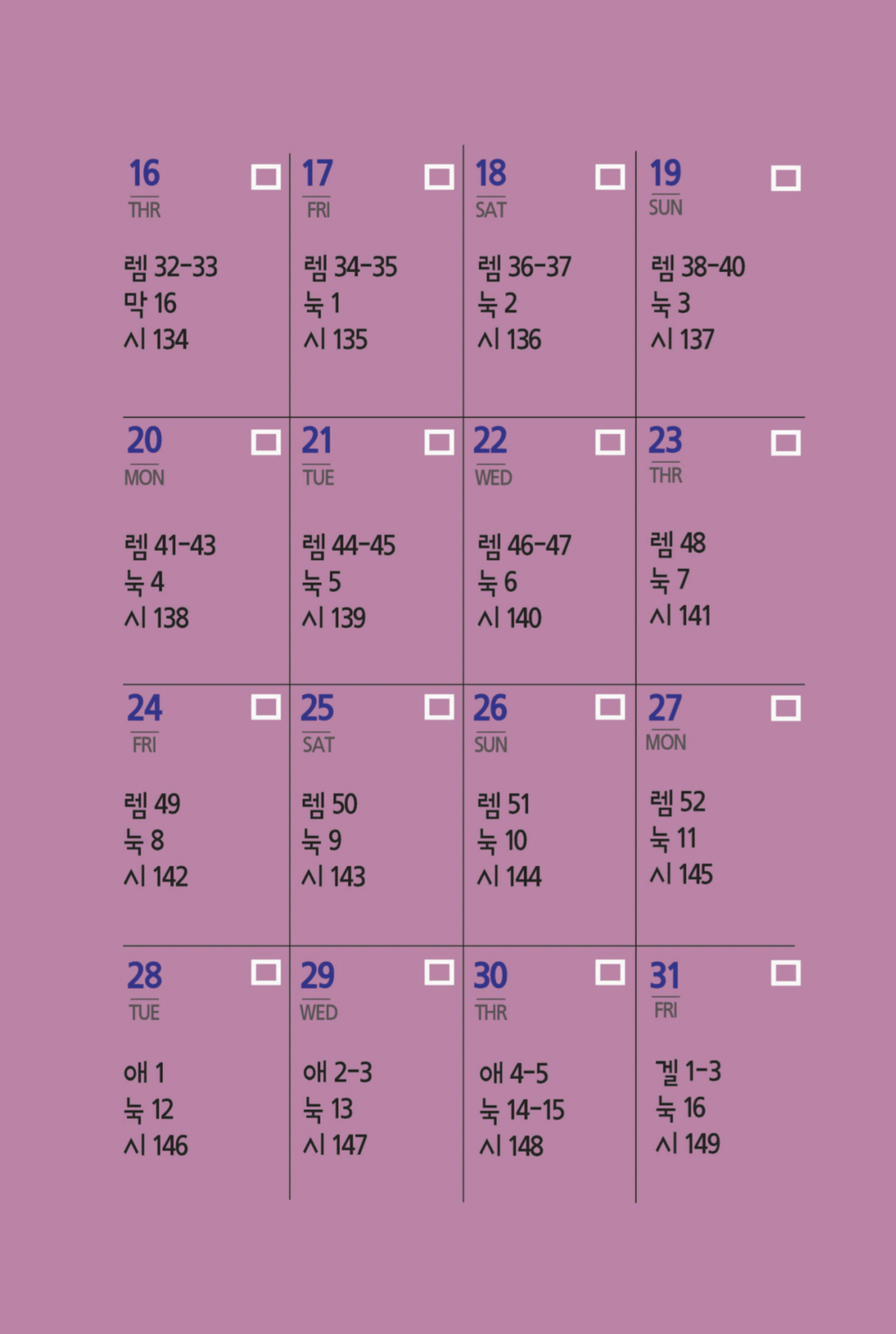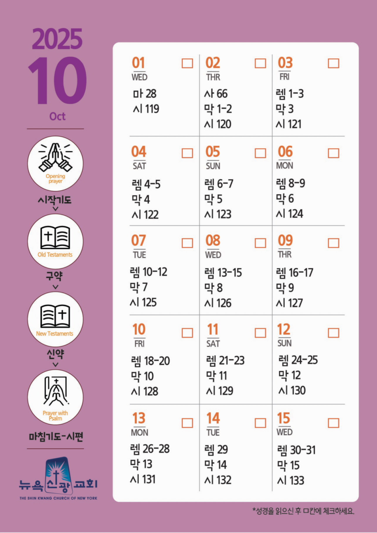 10월 성경일독표 Publish on October 05,2025 | 관리자