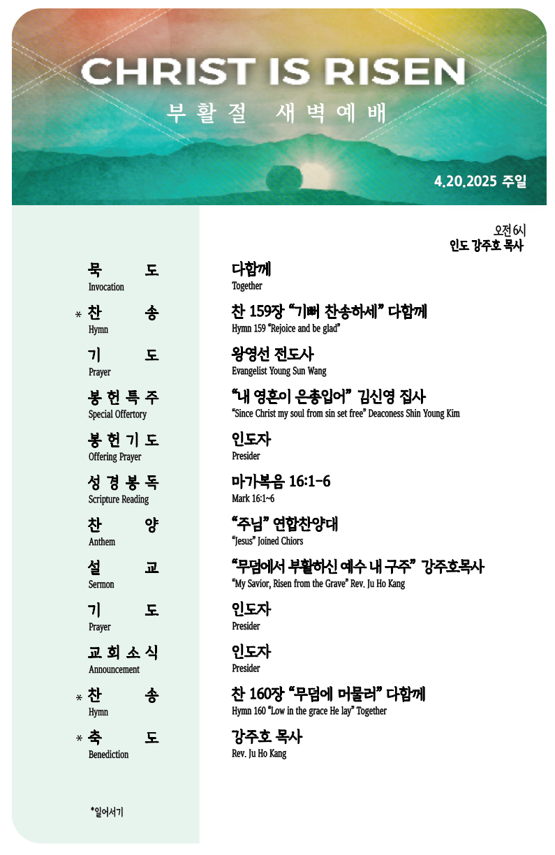 부활절 새벽예배 Publish on April 22,2025 | 관리자
